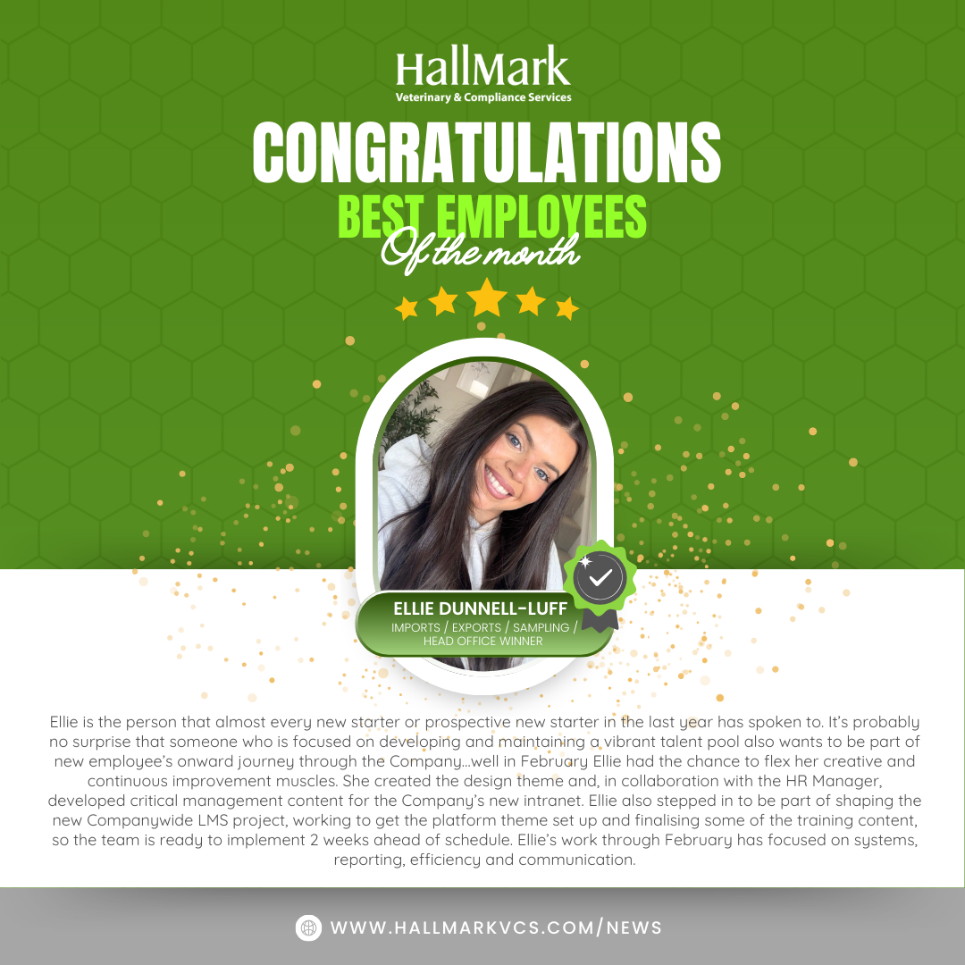 In February, she channelled her creativity and systems focus into the development of the Company’s new intranet, creating the design theme and collaborating with HR to build key management content. At the same time, she played an active role in shaping the new companywide LMS platform — refining the theme, finalising training content and helping prepare the system for launch two weeks ahead of schedule.